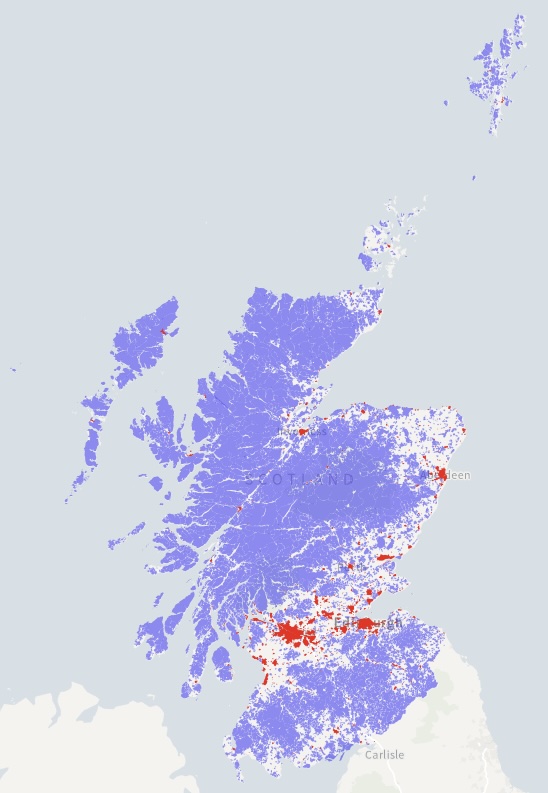 Red = Urban Scotland (no properties will be included in urban Scotland)