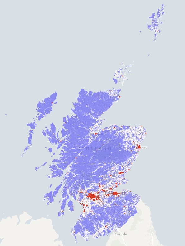 Red = Urban Scotland (no properties will be included in urban Scotland)