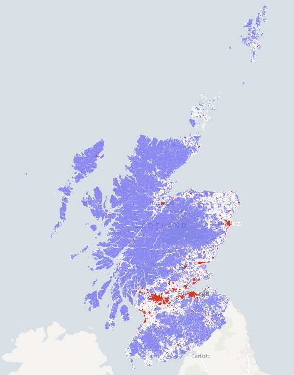 Red = Urban Scotland (no properties will be included in urban Scotland)